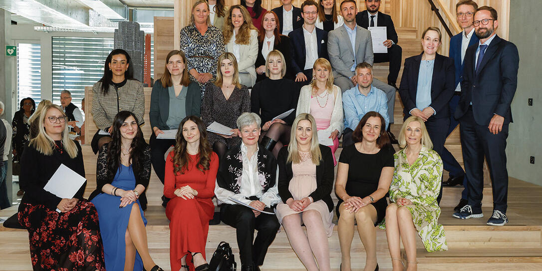Absolventinnen und Absolventen des Zertifikatsstudiengangs Treuhandwesen mit Alexandra Butterstein, LL.M., und Stefan Wenaweser.