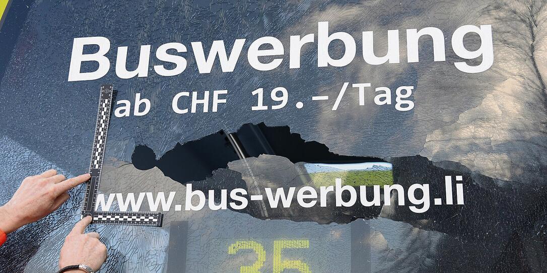 Drei Stahlkugeln aus der Gasdruckpistole trafen den Linienbus: Eine schlug nur wenige Zentimeter über dem Kopf des Chauffeurs ein. Die zwei weiteren beschädigten eine Seiten- und die Heckscheibe.