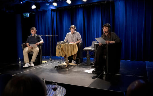 Die zwei Sagenjäger Simon Berginz, Andi Wullschleger und Gabriella Alvarez-Hummel nahmen am Dienstag im Schlösslekeller einen Live-Podcast zu den Sagen rund um Schloss Vaduz auf.