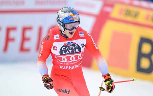 Mit 0.79 Sekunden distanziert Marco Odermatt die Konkurrenz bei der Lauberhornabfahrt in Wengen. Das Podest komplettieren Vincent Kriechmayr und Giovanni Franzoni.