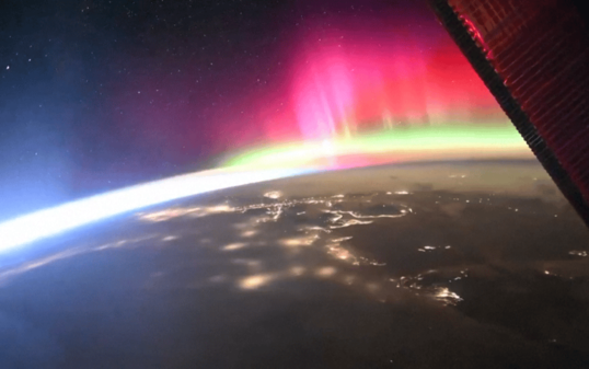 Der japanische Astronaut Kimiya Yui hat an Bord der Internationalen Raumstation ISS ein farbenprächtiges Naturphänomen auf Video festgehalten.
