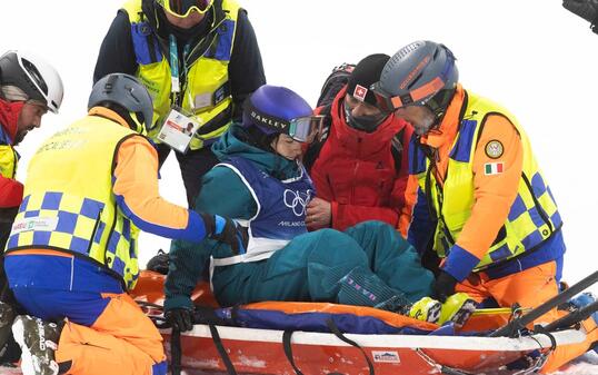 Nach ihrem Olympiasieg im Slopestyle wollte Mathilde Gremaud auch im Big Air Gold gewinnen. Doch der Abend endete für sie im Rettungsschlitten.