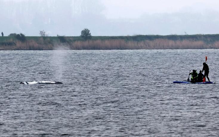 Der vor Poel gestrandete Buckelwal liegt nicht mehr auf der Stelle: Aufnahmen im Netz zeigen, dass das Tier schwimmt und mehrfach die Richtung ...