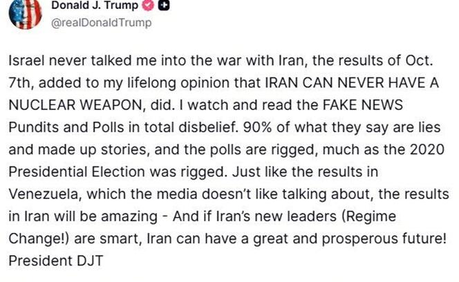 In seinem Post feiert Trump die vermeintliche Vernichtung der iranischen Führung und Streitkräfte und nutzt dabei erneut die religiöse Formel «praise be to Allah!» – eine Demütigung der iranischen Verhandlungspartner.