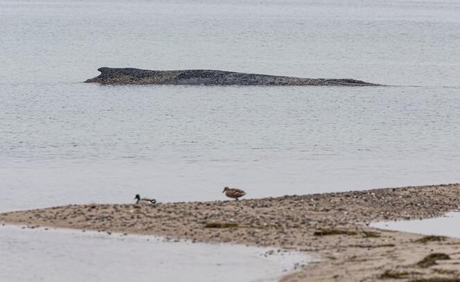 Ein erstes Foto zeige, wie sein Rücken in der Bucht aus dem Wasser der Ostsee herausragt. Ein Reporter der «Bild» bestätigt, dass er das Tier von der Seebrücke aus sehen könne.