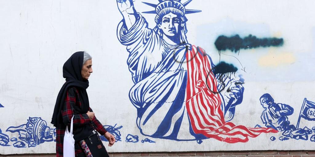 Eine ältere Iranerin geht an einem antiamerikanischen Wandbild in Teheran vorbei. In Genf sollen Iran und die USA neue Gespräche über das Atomprogramm führen.