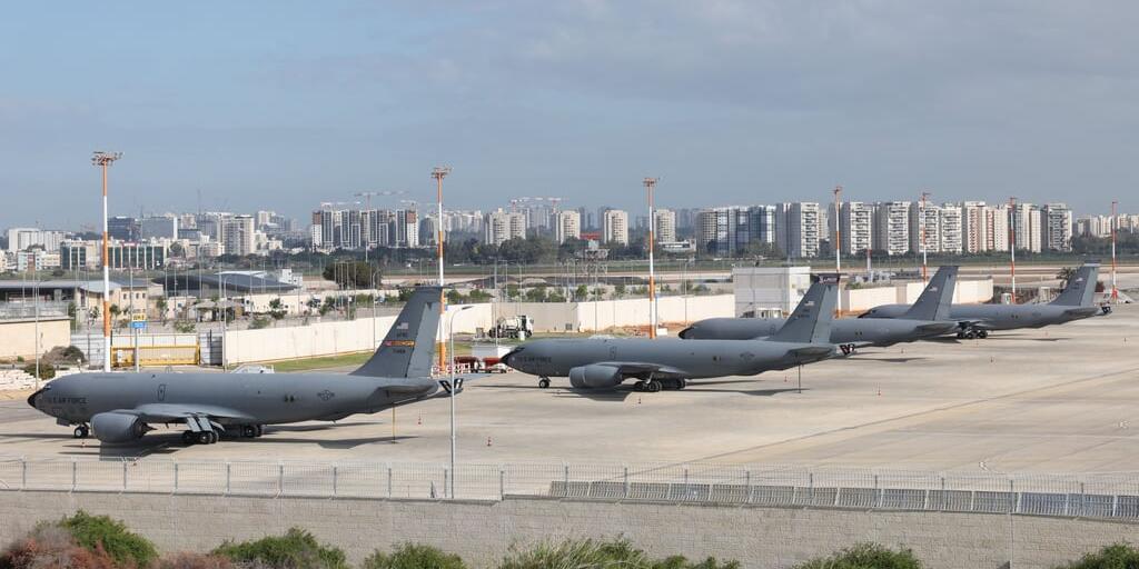 US-Luftwaffen-Tankflugzeuge vom Typ KC-135 Stratotanker am Flughafen Ben Gurion bei Tel Aviv.