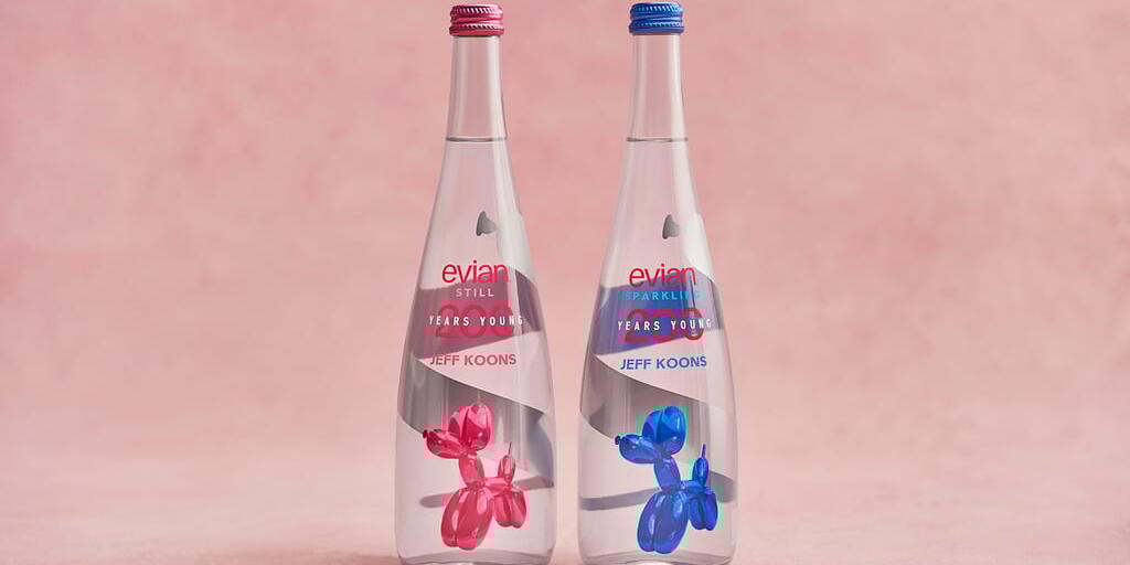 Der US-Amerikaner Jeff Koons hat zum 200. Geburtstag eine Evian-Flasche gestaltet.