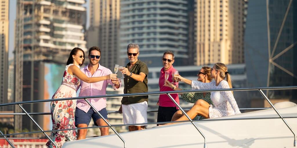 Privatjets, Yachten und Luxusvillen sorgen für einen hohen CO2-Fussabdruck: Expats auf einer Privatyacht in den arabischen Emiraten.
