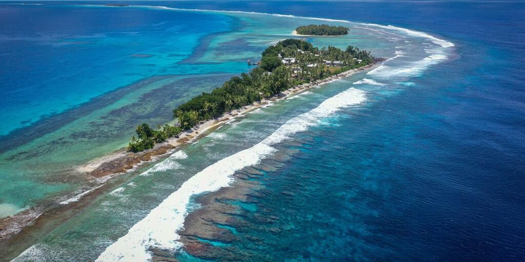 Die Insel Tuvalu im Südpazifik verliert wegen des Anstiegs des Meeresspiegels an Landfläche.