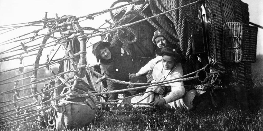 Marie Rudolf-Probst (links) nach einer unsanften Landung ihres Gasballons, aufgenommen am 3. November 1912.