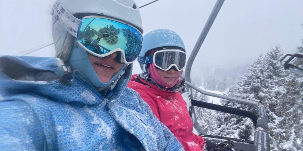 Familie Wehli schon fast eingeschneit auf dem Sessel in der Lenzerheide.