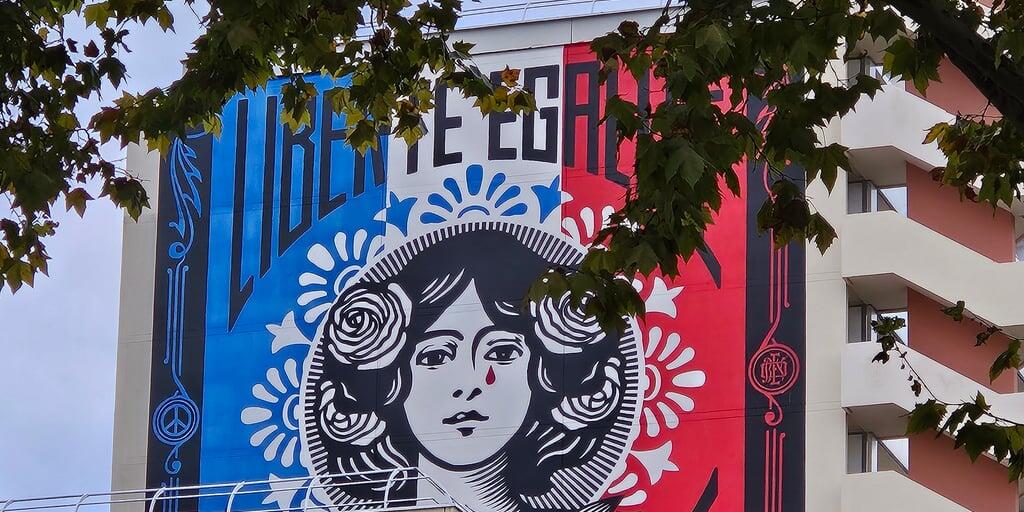 In Paris auf Streetart-Tour: Das Gemälde des US-Künstlers Obey im 13. Arrondissement.