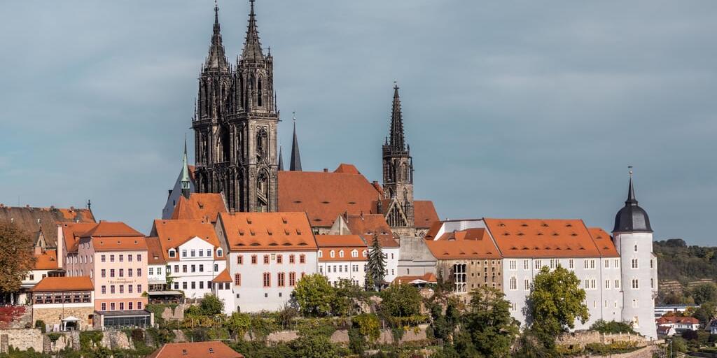 Burgberg und Domhügel über der Altstadt von Meissen: Der gotische Dom wurde 1581 zur lutherischen Kirche. Die Albrechtsburg gilt als ältester Schlossbau Deutschlands.