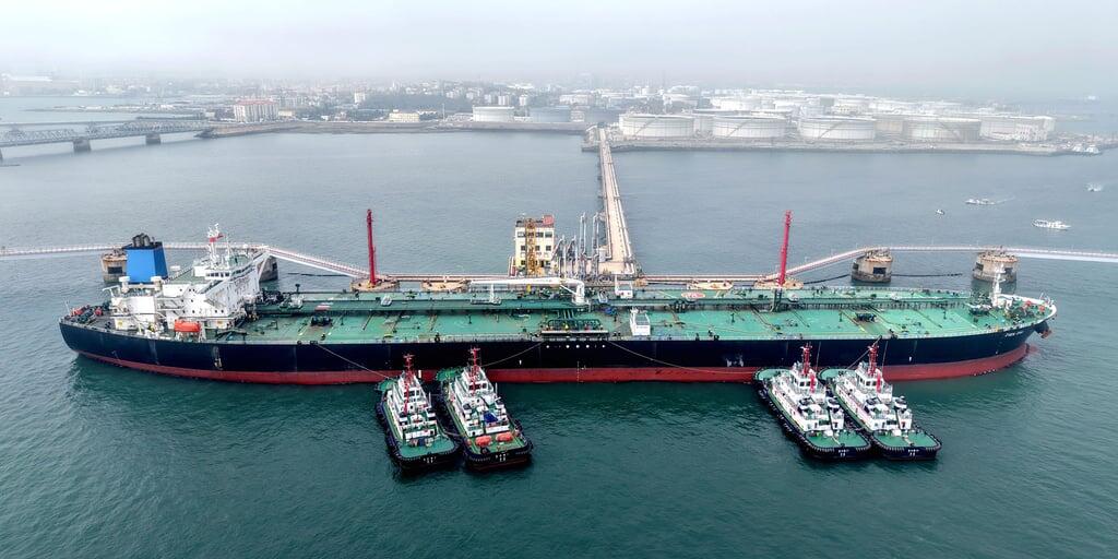 Empfindlicher Punkt: Ein Öl-Tanker wird im Hafen von Shandong entladen.