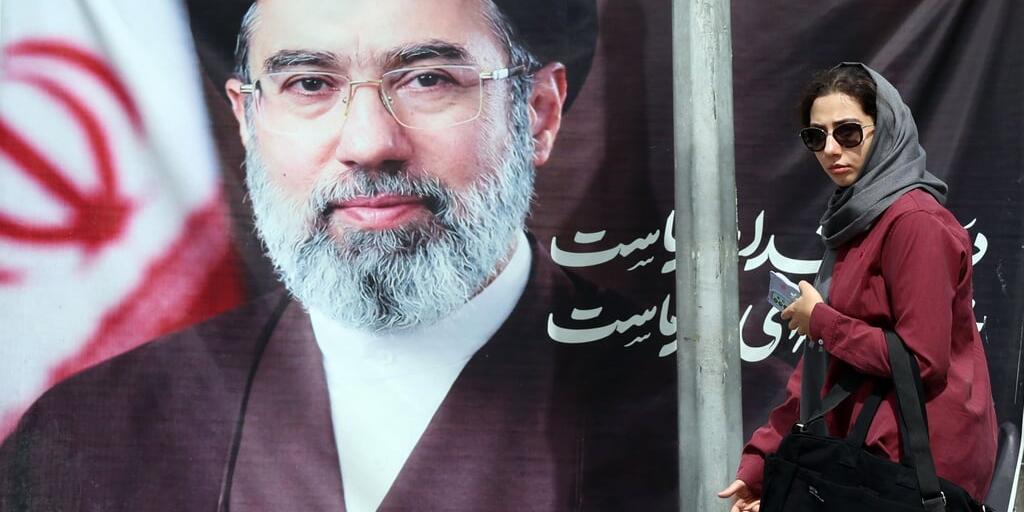 Ein Plakat in Teheran zeigt Ajatollah Mojtaba Khamenei - vor dem verhängnisvollen Raketenangriff.