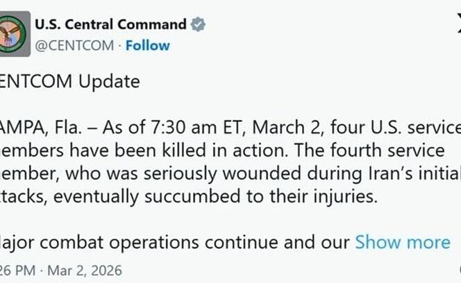 Das US-Militär gab am Montag den Tod von zwei weiteren amerikanischen Soldaten während der Militäreinsätze gegen den Iran bekannt. Damit steigt die Gesamtzahl der Todesopfer auf sechs. Das US-Zentralkommando erklärte in einem Beitrag auf X, dass die Streitkräfte «kürzlich die Überreste von zwei zuvor vermissten Soldaten aus einer Einrichtung geborgen haben, die während der ersten Angriffe des Iran in der Region getroffen wurde». In dem Beitrag wurde nicht angegeben, wo die beiden Soldaten getötet wurden. Ihre Identität wird erst 24 Stunden nach Benachrichtigung ihrer Familien bekannt gegeben, teilte das Militär mit.