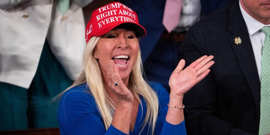 Noch im Frühjahr war Marjorie Taylor Greene eine begeisterte Anhängerin von Donald Trump. Das Bild zeigt sie während einer Ansprache des US-Präsidenten im Kongress.
