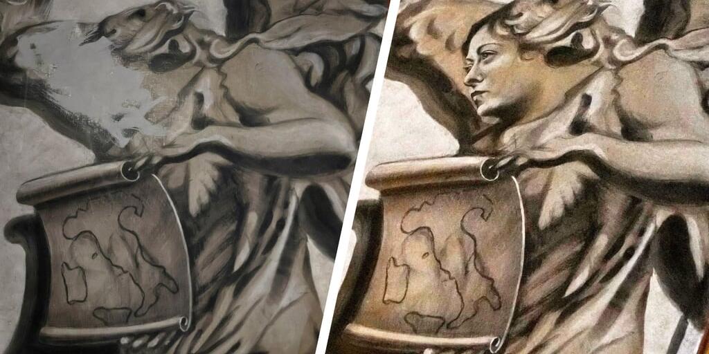 Bruno Valentinetti, der 83-jährige Kirchendiener und Dekorationsmaler, der den Engel restauriert hatte, erklärte gestern gegenüber den Medien, dass ihn die Kurie angewiesen habe, das Gesichts des Engels - der laut Experten kein Engel, sondern eine Siegesgöttin ist, weil es nur männliche Engel gebe - wieder zu überstreichen.