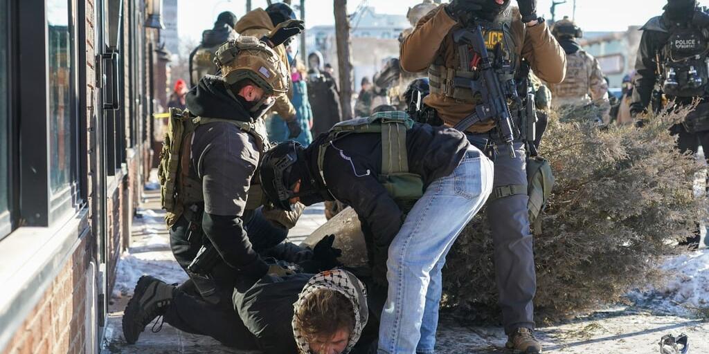 Ein Demonstrant wird festgenommen, nachdem Migrationspolizisten am 24. Januar in Minneapolis einen Mann getötet haben.