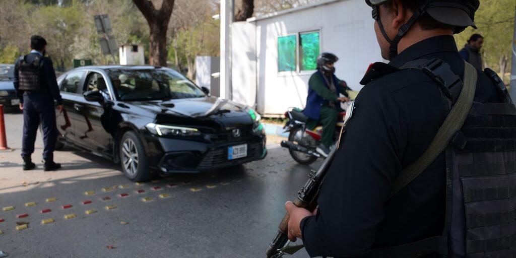Pakistanische Sicherheitskräfte kontrollieren bei einem Checkpoint in Islamabad die Reisenden.
