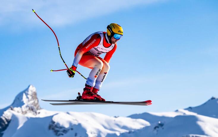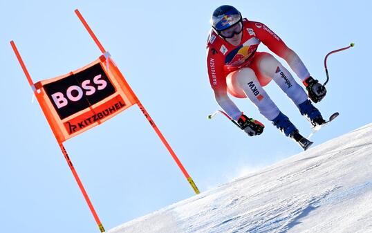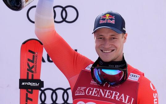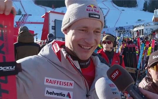 Mit nur drei Hundertsteln Rückstand wird Franjo von Allem beim Super-G in Kitzbühel zweiter hinter Marco Odermatt. Der Berner kann sich aber trotzdem über den Podestplatz freuen. Es ist bereits das dritte Mal in dieser Saison, dass sich von Allmen und Odermatt an einem Rennen die ersten beiden Plätze teilen.