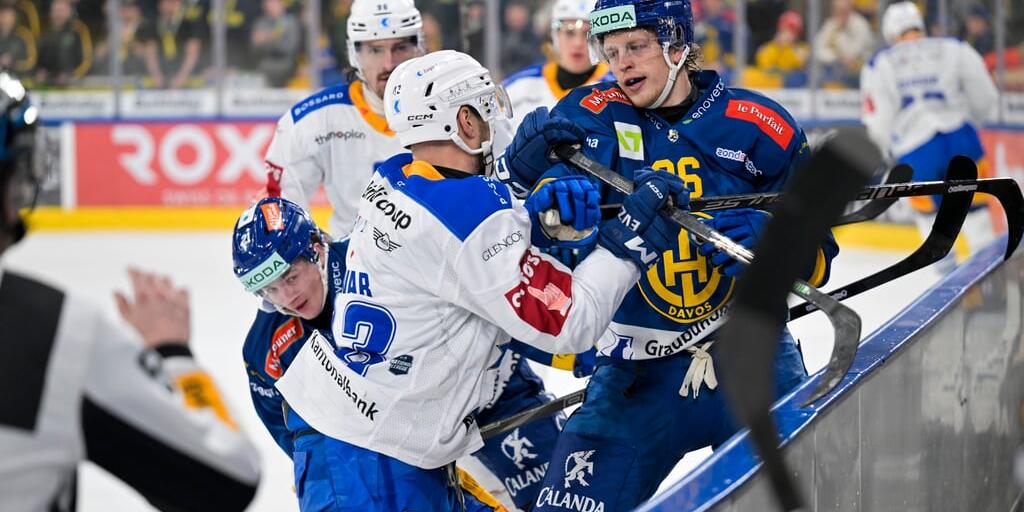 Der Zuger Jan Kovar (links) legt sich mit dem Davoser Simon Knak an.
