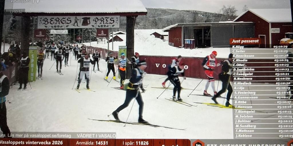 Nach fünf Stunden und 10 Minuten hat Christoph Seiler (Bildmitte mit Startnummer 205..), der Präsident der Schweizer Leichtathletik, die Hälfte des Wasalaufs absolviert.