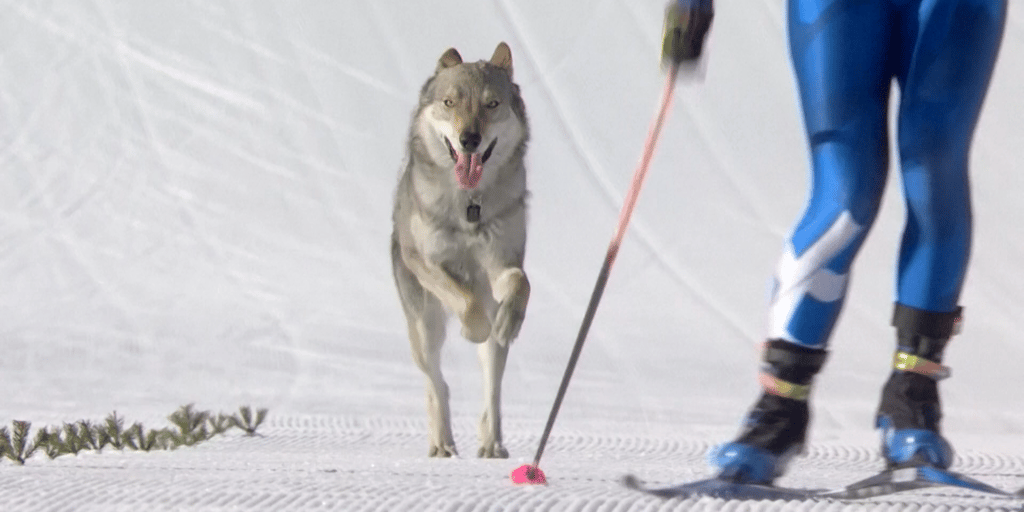 Hund sprintet bei olympischem Rennen mit Langläuferinnen ins Ziel