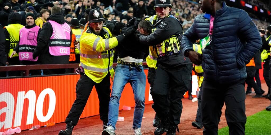 Ein YB-Fan wird in Birmingham von der Polizei abgeführt.