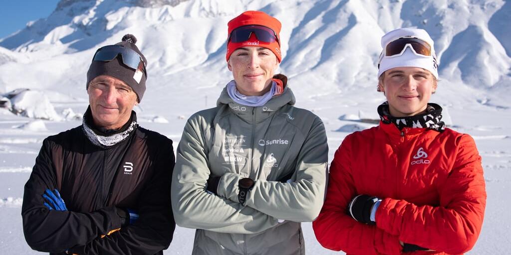 Finn Kempf (Mitte) mit Vater Hippolyt und dem jüngeren Bruder Noé beim Training auf der Engstligenalp.