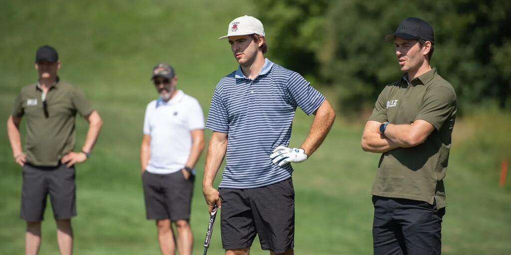 Nico Hischier (Mitte) mit Eishockey-Kumpel Raphael Diaz (rechts) auf dem Golfplatz.