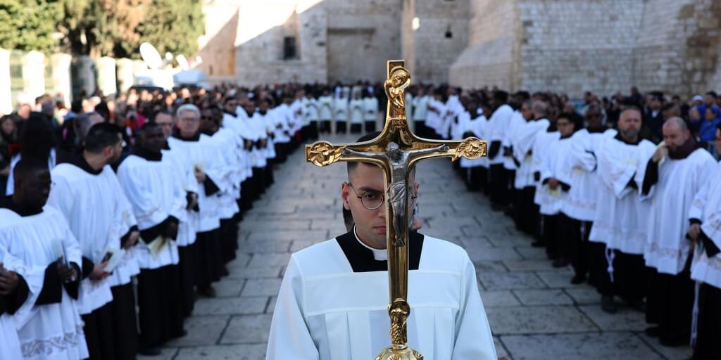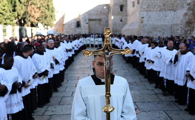 Kardinal Pizzaballa kam in einer traditionellen Prozession aus Jerusalem nach Bethlehem. Er rief zu «einem Weihnachten voller Licht» auf. «Nach zwei Jahren der Dunkelheit brauchen wir Licht», sagte er bei der Überquerung der Mauer, die Jerusalem von Bethlehem trennt.