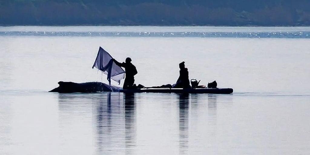 Viel Bewegung drumherum, aber Wal verharrt