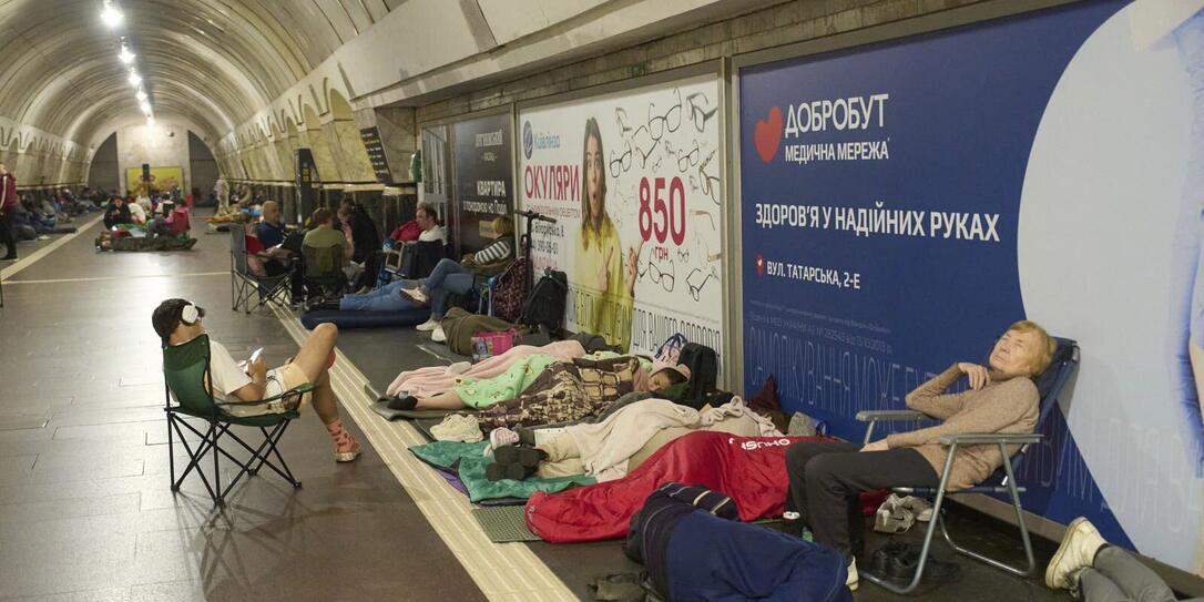 Menschen ruhen sich während eines russischen Angriffs in Kiew, Ukraine, am frühen Donnerstag, 10. Juli 2025, in einer Metrostation aus, die als Bombenschutzraum genutzt wird. (Bild: Efrem Lukatsky / AP)
