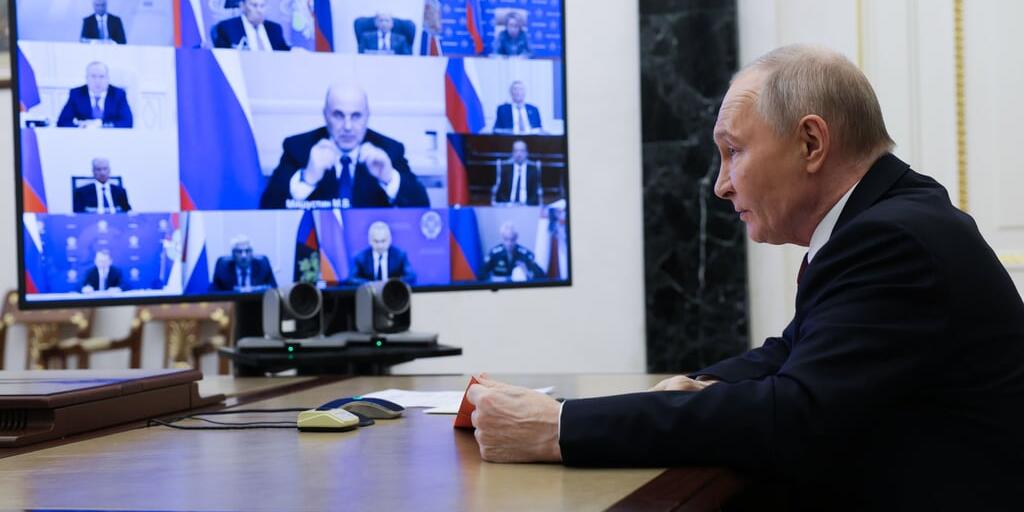 Geheimpakt mit Washington? Kreml-Herrscher Wladimir Putin an einer Tele-Konferenz mit dem russischen Sicherheitsrat am Samstag.