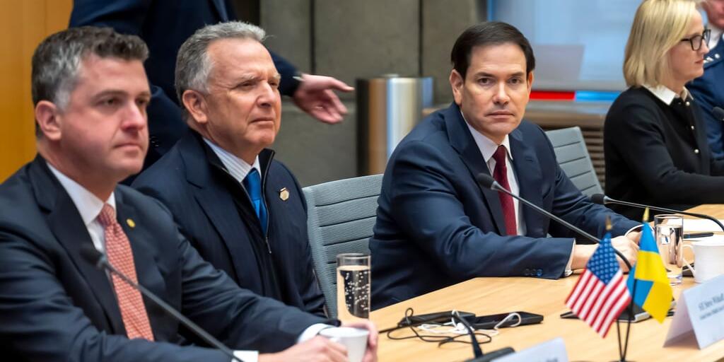Der US-Aussenminister Marco Rubio (Mitte) am Sonntag in Genf. Rechts neben ihm sitzt Präsident Donald Trumps Unterhändler Steve Witkoff.