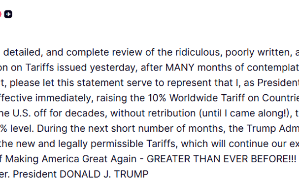 Neuer Strafzoll von 10 Prozent gilt ab kommendem Dienstag