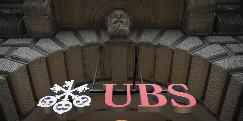 Das Logo der UBS am ehemaligen Hauptsitz der Credit Suisse am Paradeplatz in Zürich.