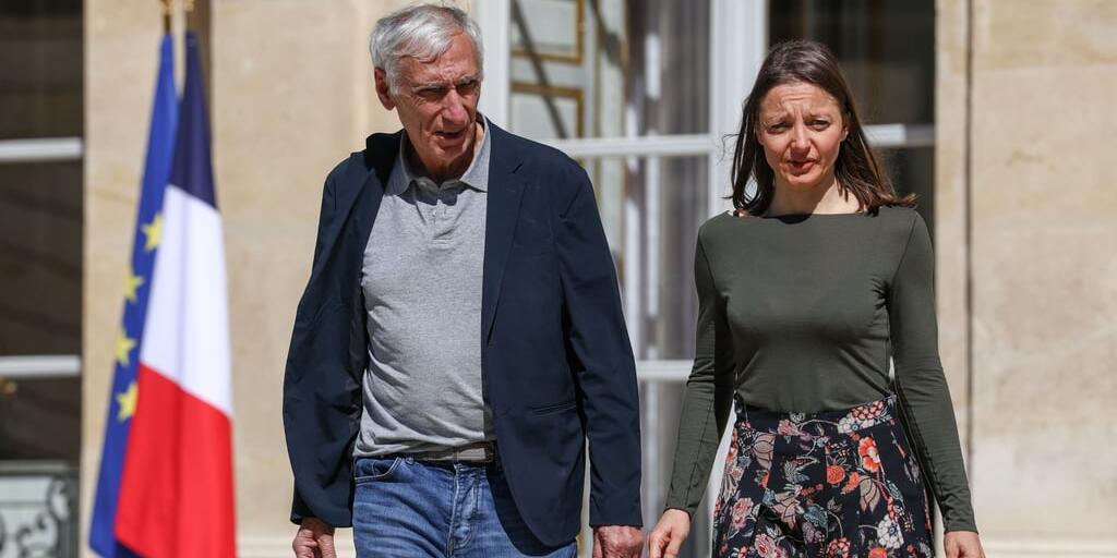 Jacques Paris und Cécile Kohler verlassen nach ihrem Treffen mit Emmanuel Macron den Elysée-Palast.