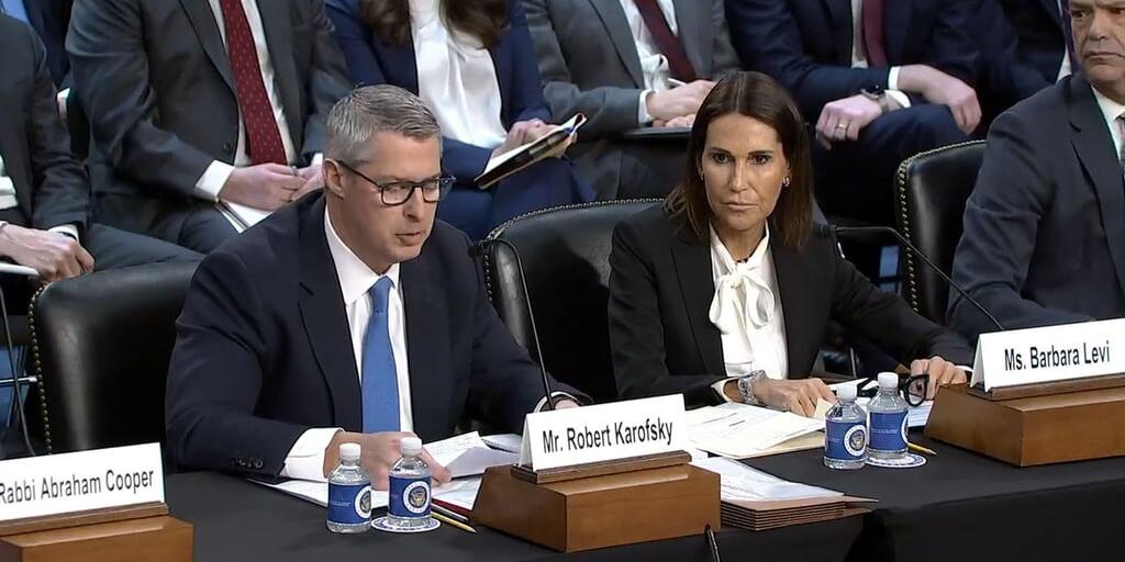 Die beiden UBS-Vertreter Robert Karofsky und Barbara Levi nahmen im Februar 2026 an einer Anhörung des amerikanischen Senats über Nazi-Konten teil.