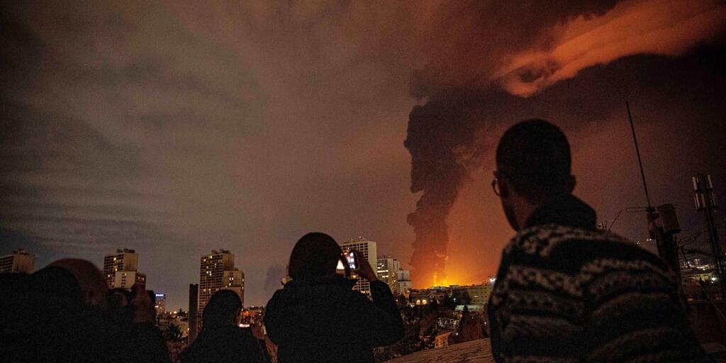 Giftiger Rauch in Teheran, Iran: Einwohner machen Fotos von einem brennenden Öllager.