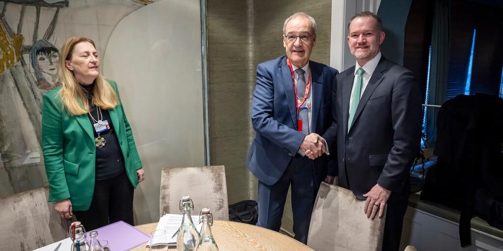 Der Schweizer Bundespräsident Guy Parmelin (Mitte) hat den US-Handelsbeauftragten Jamieson Greer letztmals im Januar in Davos getroffen. Auch Seco-Chefin Helene Budliger Artieda nahm an diesem Gespräch teil.