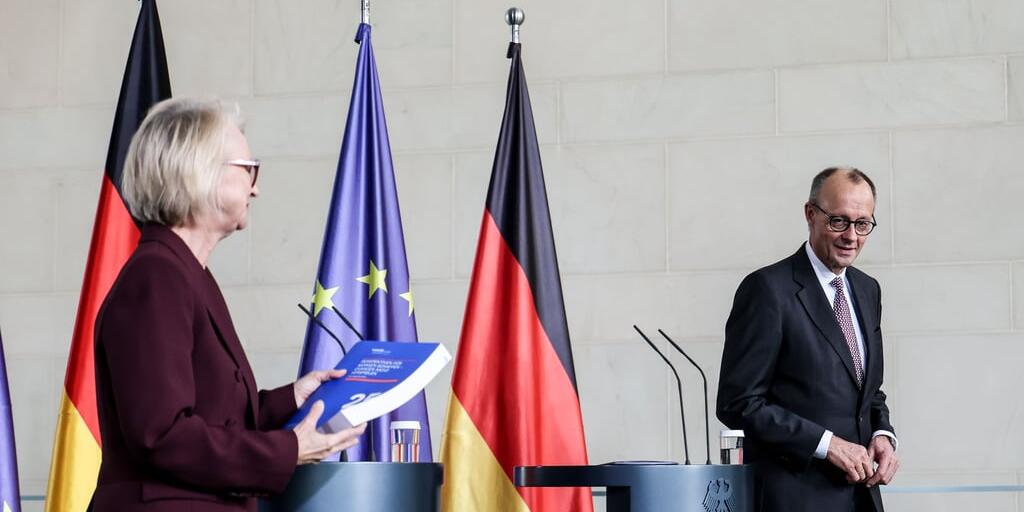 «Wir nehmen, was sie schreiben, ernst, wir lesen es»: Die Ökonomin Monika Schnitzer überreicht Kanzler Merz das Gutachten des Sachverständigenrats.