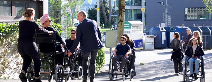 nit zugedeckten Augen auf einer Plattform sitzen und sich durch einen musikalisch angereicherten Soundscape fahren lassen. Eine veränderte Wahrnehmung von Musik, Raum und Alltagsgeräuschen.