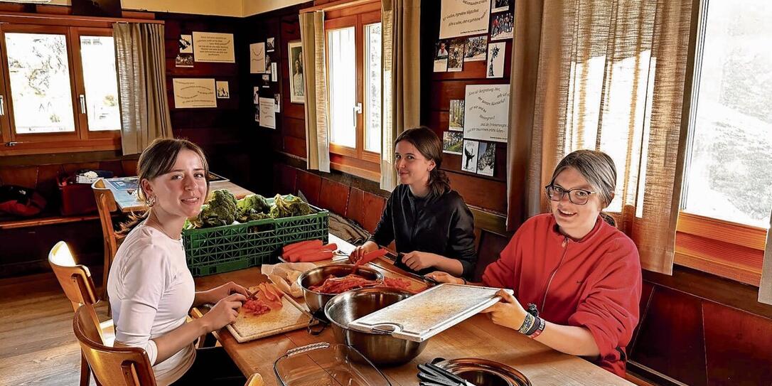 Projektwoche auf der Pfälzerhütte: Schülerinnen des Liechtensteinischen Gymnasiums schmeissen die Beiz.