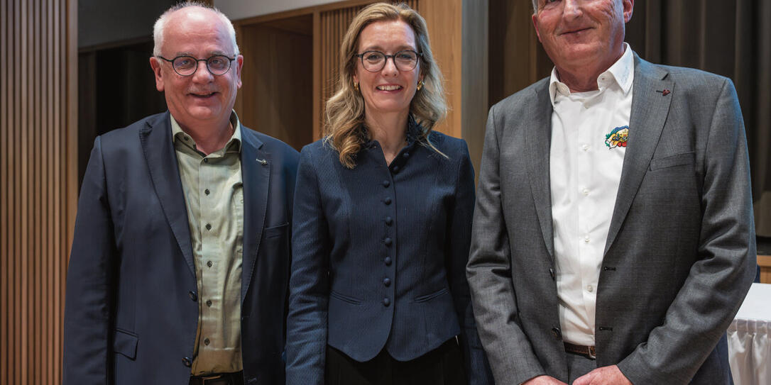 Vorsteher Daniel Hilti, Regierungschefin-Stellvertreterin Sabine Monauni und Präsident Günther Kranz an der diesjährigen Jahresversammlung des Liechtensteiner Imkervereins.