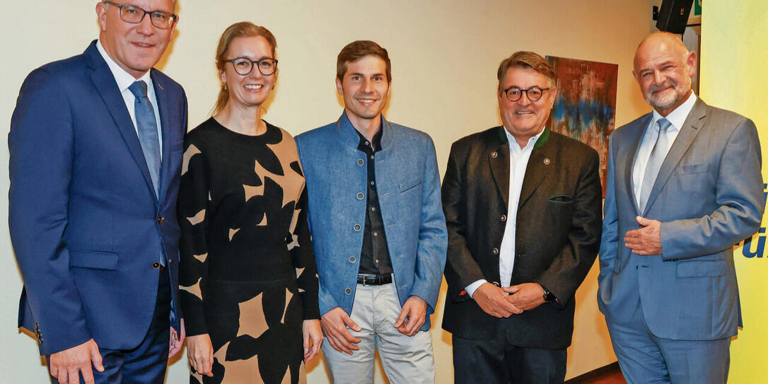 Das FBP-Regierungsteam mit den Triesenberger Landtagskandidaten anlässlich der Nominierung im Restaurant Edelweiss: Daniel Oehry, Sabine Monauni, Sebastian Gassner, Bruno Beck und Ernst Walch (v. l.).