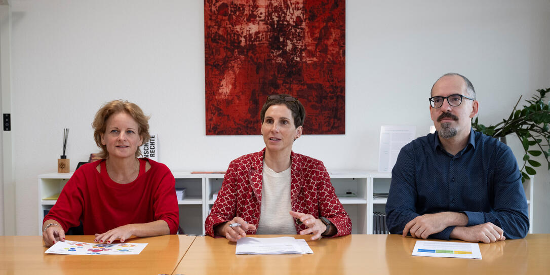 Alicia Längle (Geschäftsführerin), Christian Blank (stv. Geschäftsführer) und Helen Konzett (Ombudsperson für Kinder und Jugendliche) informierten über die Schwerpunkte des umfassenden Monitoringberichts.