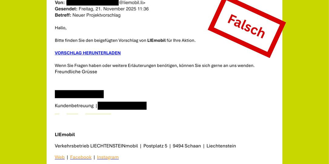 So sieht die gefälschte Nachricht der Liemobil aus. Wer diese erhält: Link nicht anklicken und sofort löschen